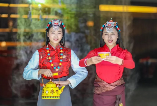 酒店門口,工作人員已經(jīng)為遠(yuǎn)道而來的客人迎了出來。敬歡迎茶水、獻(xiàn)哈達(dá),一套迎接客人的至高禮節(jié)行云如水,還未入住酒店已經(jīng)令人心情愉悅?! ?/p>