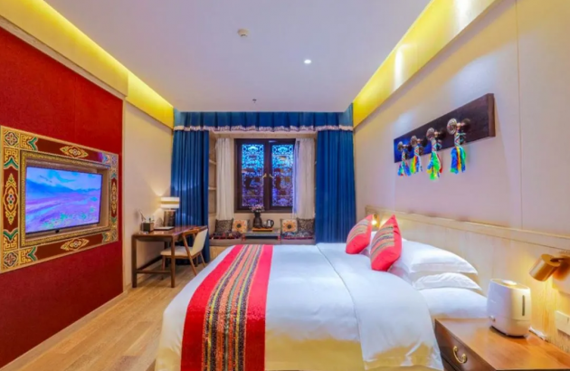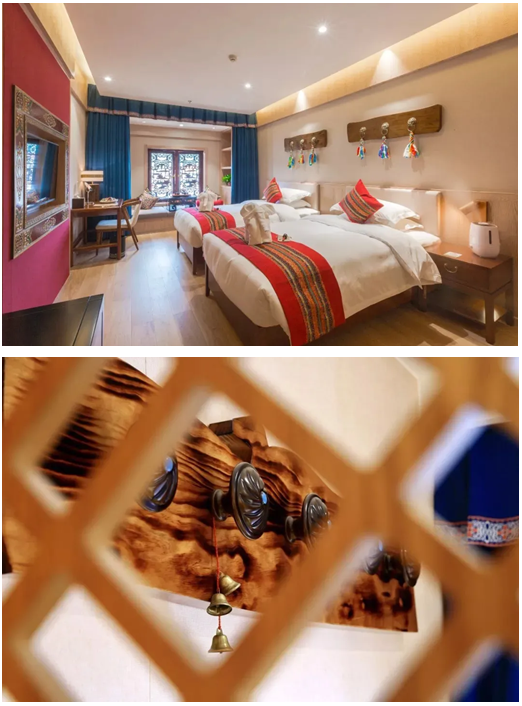 在用藏式元素裝點(diǎn)的大廳稍作片刻,新鮮勁還未過,身著民族服飾的工作人員已經(jīng)將入住手續(xù)辦理妥當(dāng),跟著指引走向房間,酒店帶給你的驚喜還不止這些?! ?/p>