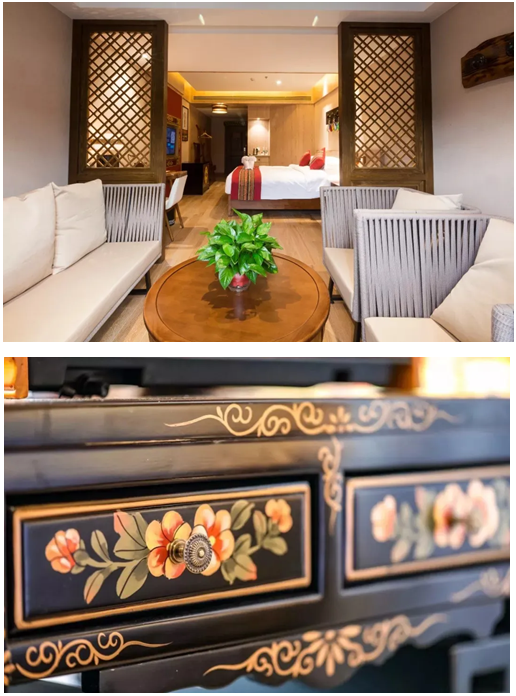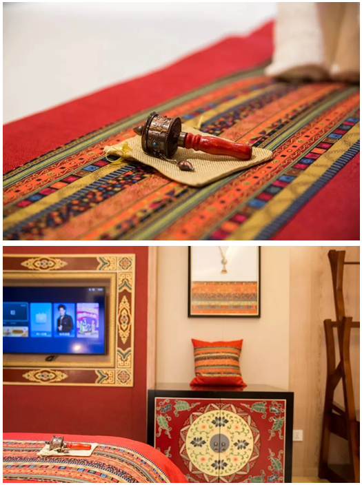 擅長融合多種風(fēng)格的設(shè)計(jì)師將精致的藏式內(nèi)飾和藝術(shù)氛圍融入到酒店設(shè)計(jì)中,把精美的藏式工藝品搬進(jìn)每一間房,讓將酒店同時(shí)具備了文藝、生活、社交多元功能的住宿空間?! ?/p>